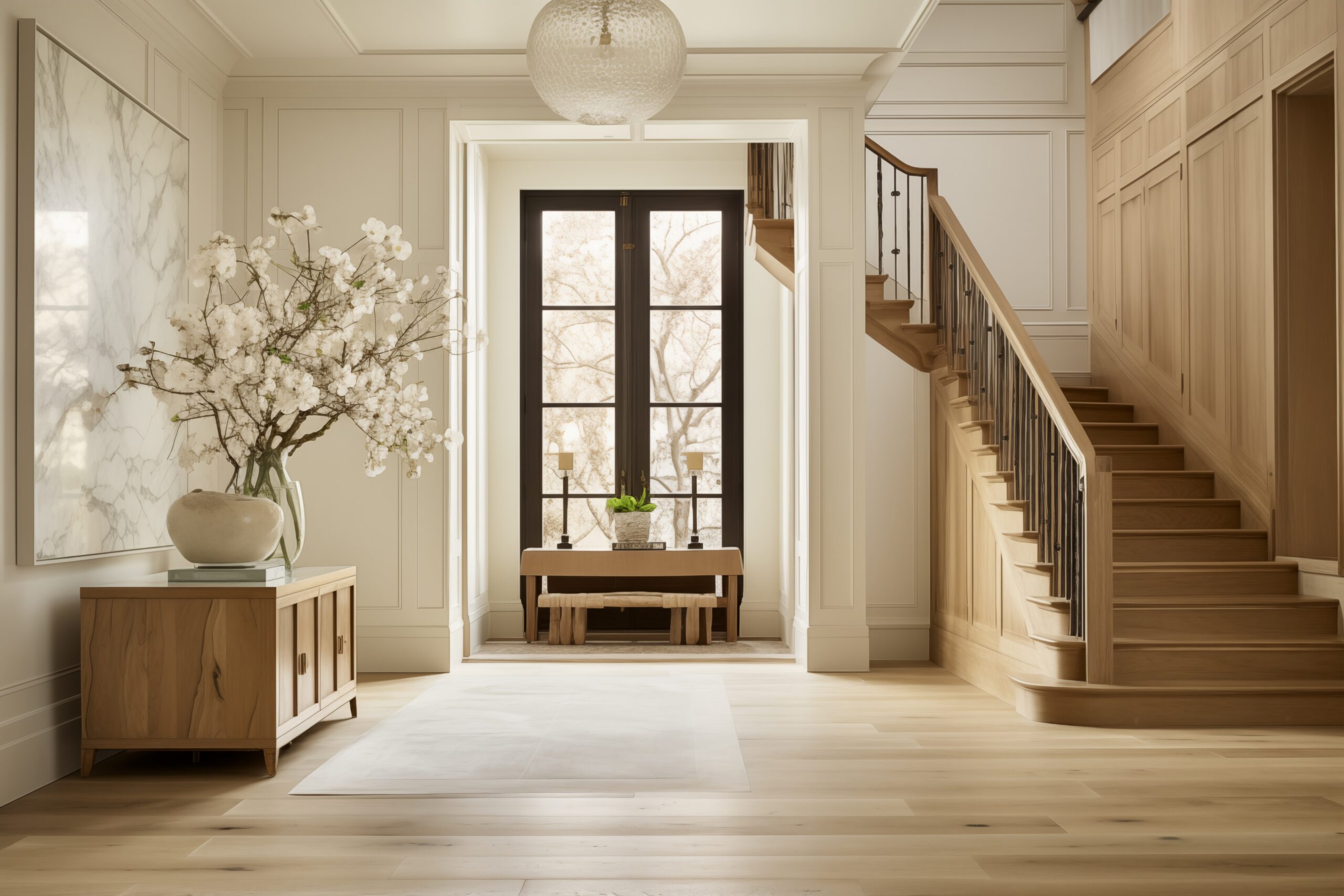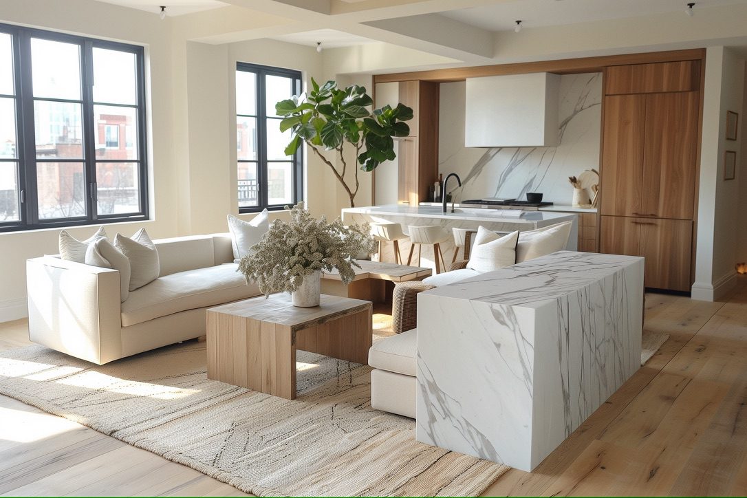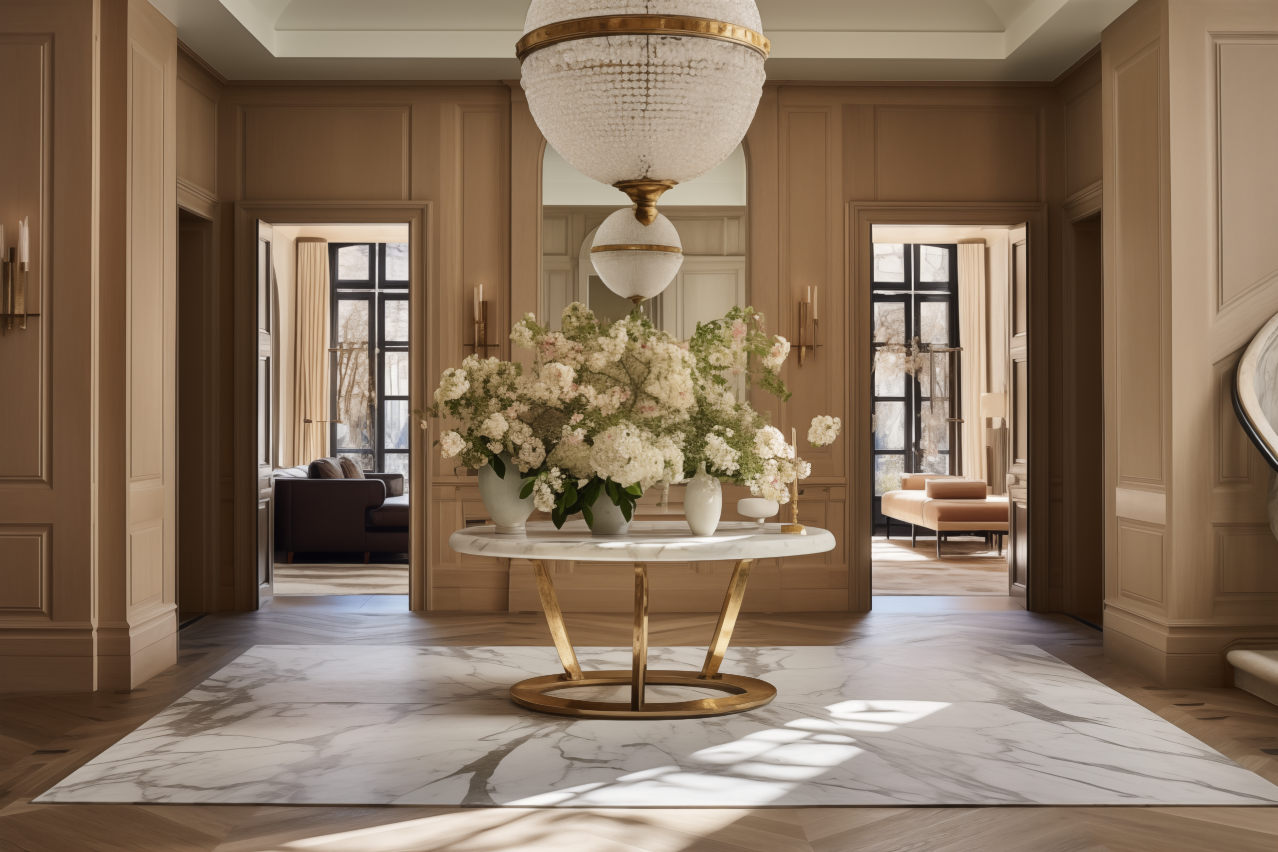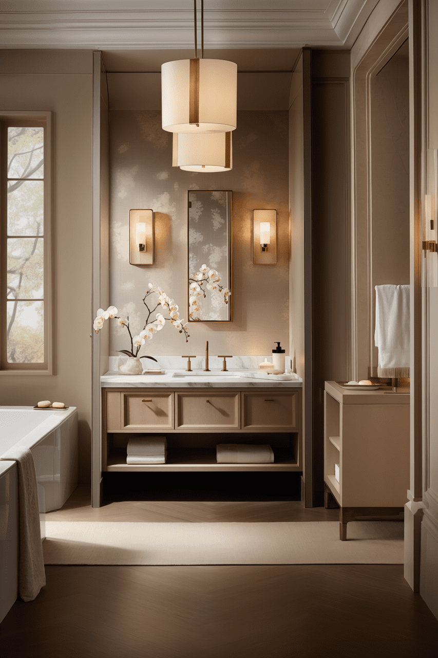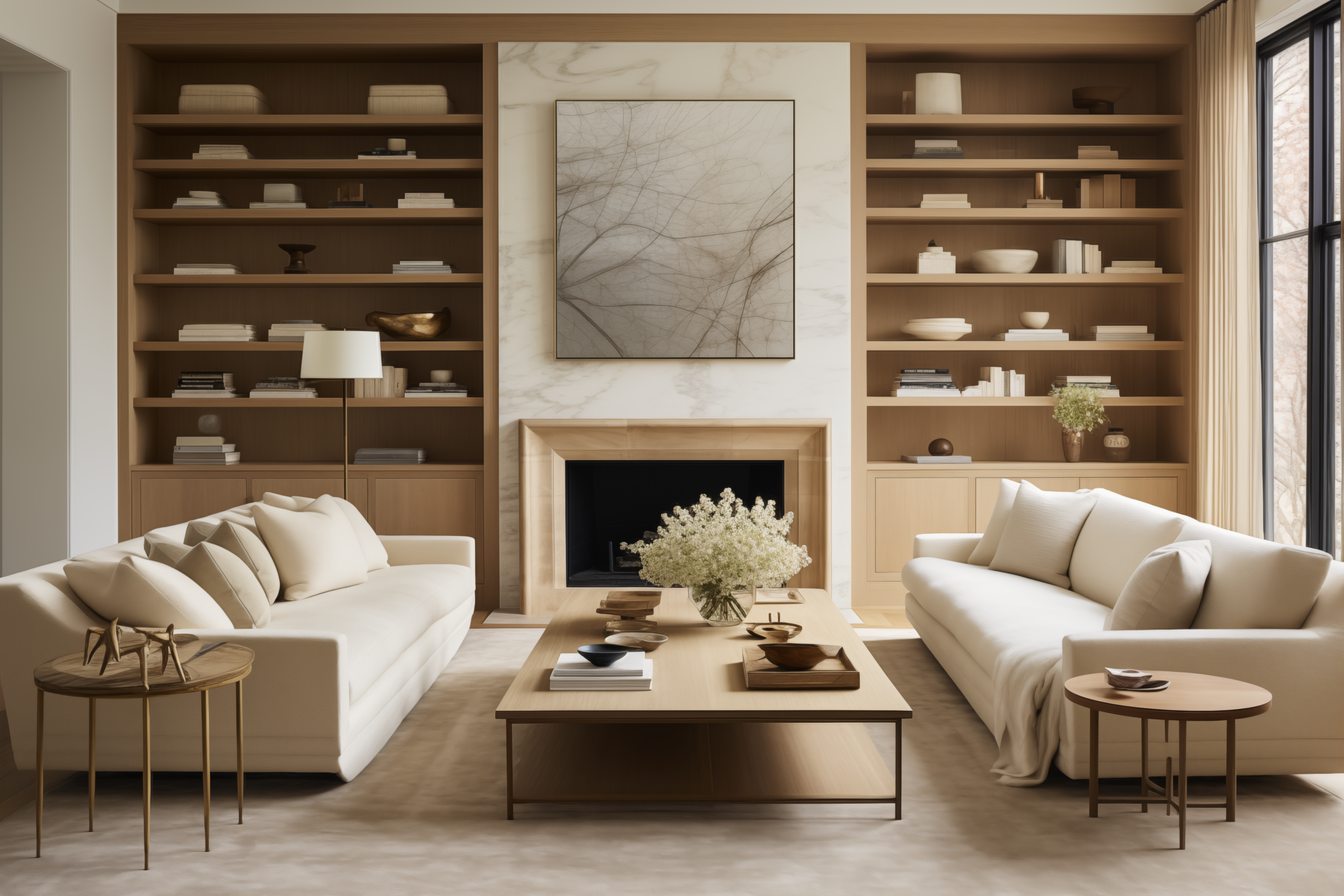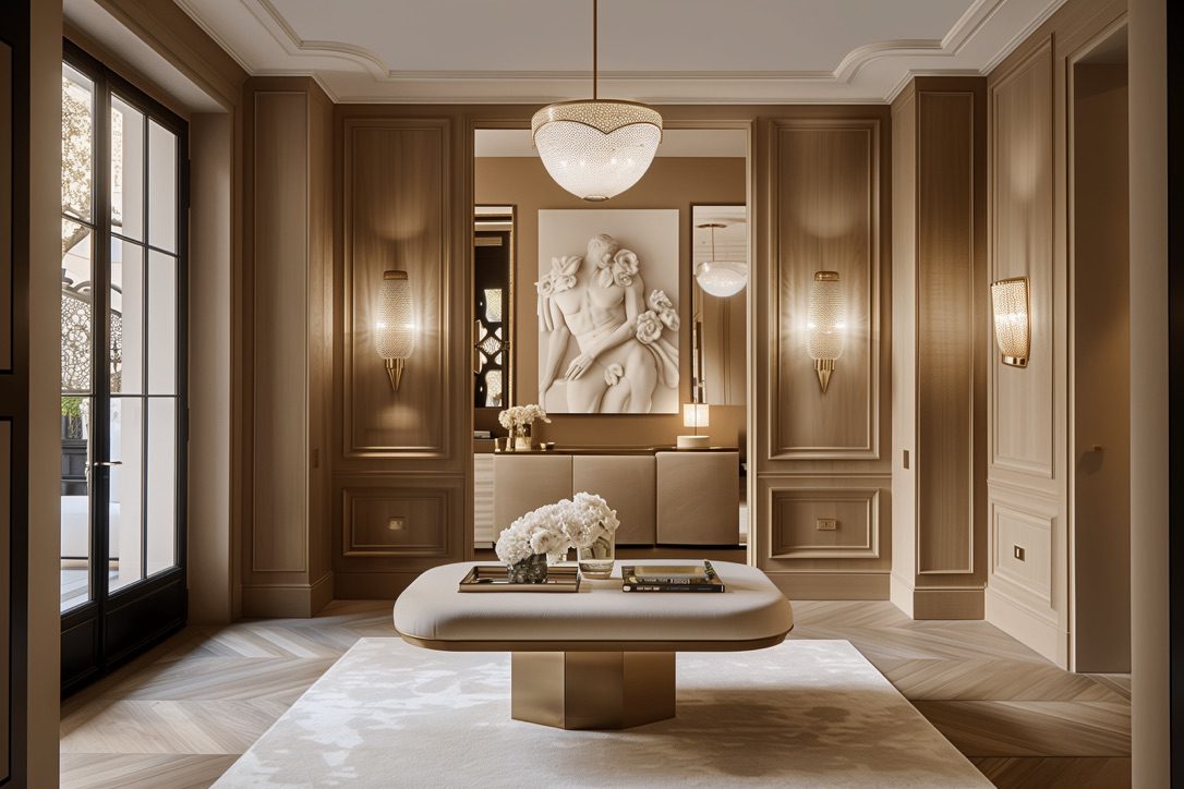 Historic preservation, Modern integration, Layered design, Warm finishes, Architectural details, Contemporary comfort