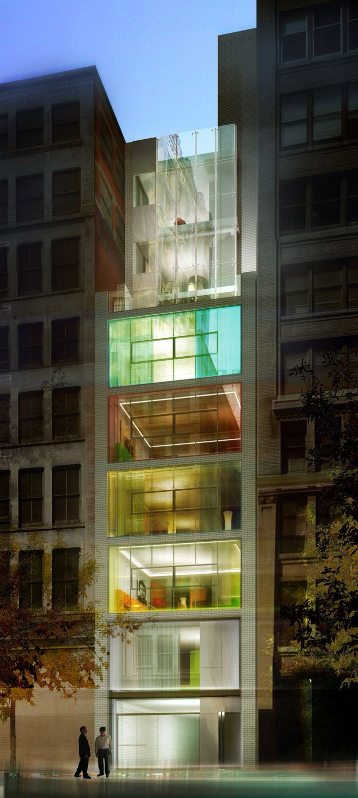 A mixed-use building on West 13th Street — residential, commercial, and an LED facade that made it one of the most published facades in New York at the time. Completed 2003–2007. The kind of early project that sets the tone for everything that follows.